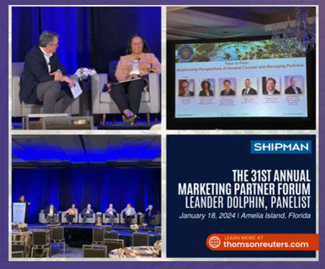 Furia Rubel placed Shipman & Goodwin LLP Managing Partner Leander Dolphin on a panel session titled, “Face to Face: Relationship Perspectives of General Counsel and Managing Partners” at Thompson Reuters’ 31st Annual Marketing Partner Forum in Amelia Island, Florida.